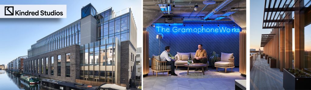 In North Kensington, the new owners of the canal-side Gramophone Works in Kensal Road W10, have instructed Frost Meadowcroft to market the top floors of the building following the letting of 40,000 sq ft to Kindred Studios. This stunning available space is constructed in CLT (cross laminated timber) designed with sustainability at its core. The private investors backed by RedevCo secured Kindred Studios, an arts and creative occupier, earlier in the year who are now occupying 40,000 sq ft. The remaining 4th and 5th floors available have impressive terraces and will be offered from 4,000 – 17,000 sq ft. Quoting rents of £45 per sq ft.